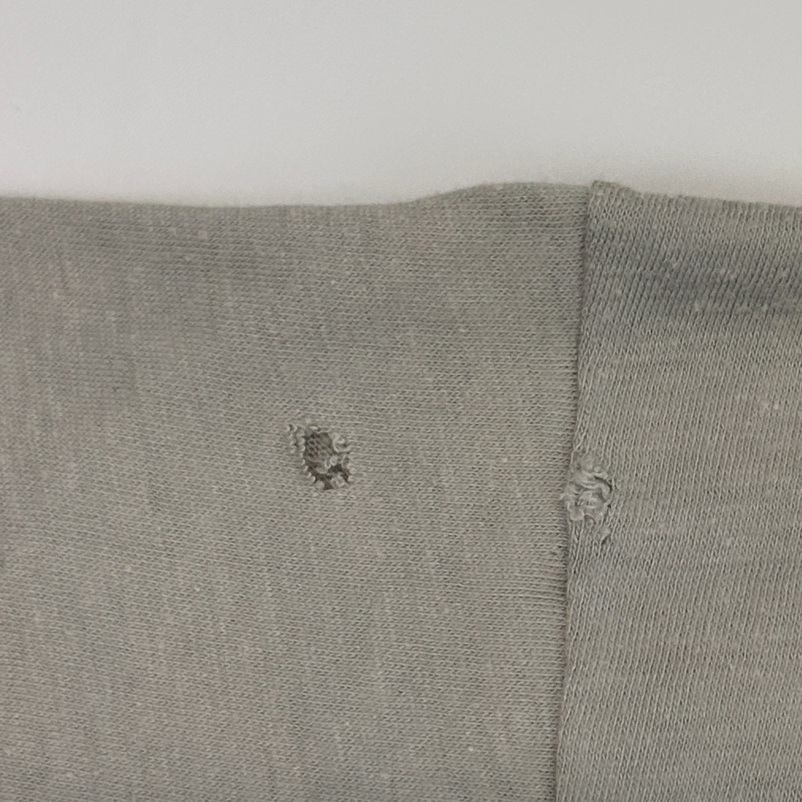 Has pilling, holes, and spots/discoloration. No other flaws noticed. Missing tag but I feel it measures similar to a Large. Check measurements to ensure fit. See photos.