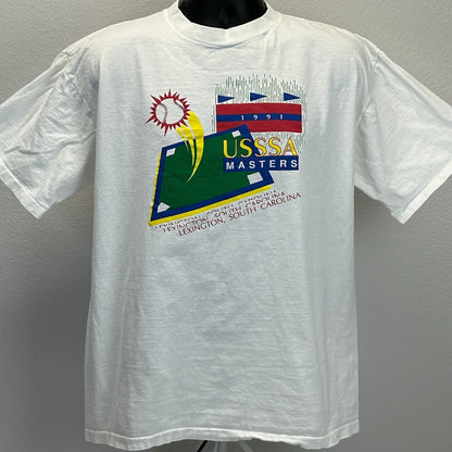Vintage USSSA Masters 1991 Softball Tournament T Shirt Mens X-Large Lexington South Carolina 90s White All Sport Single Stitch Made In USA Graphic Tee