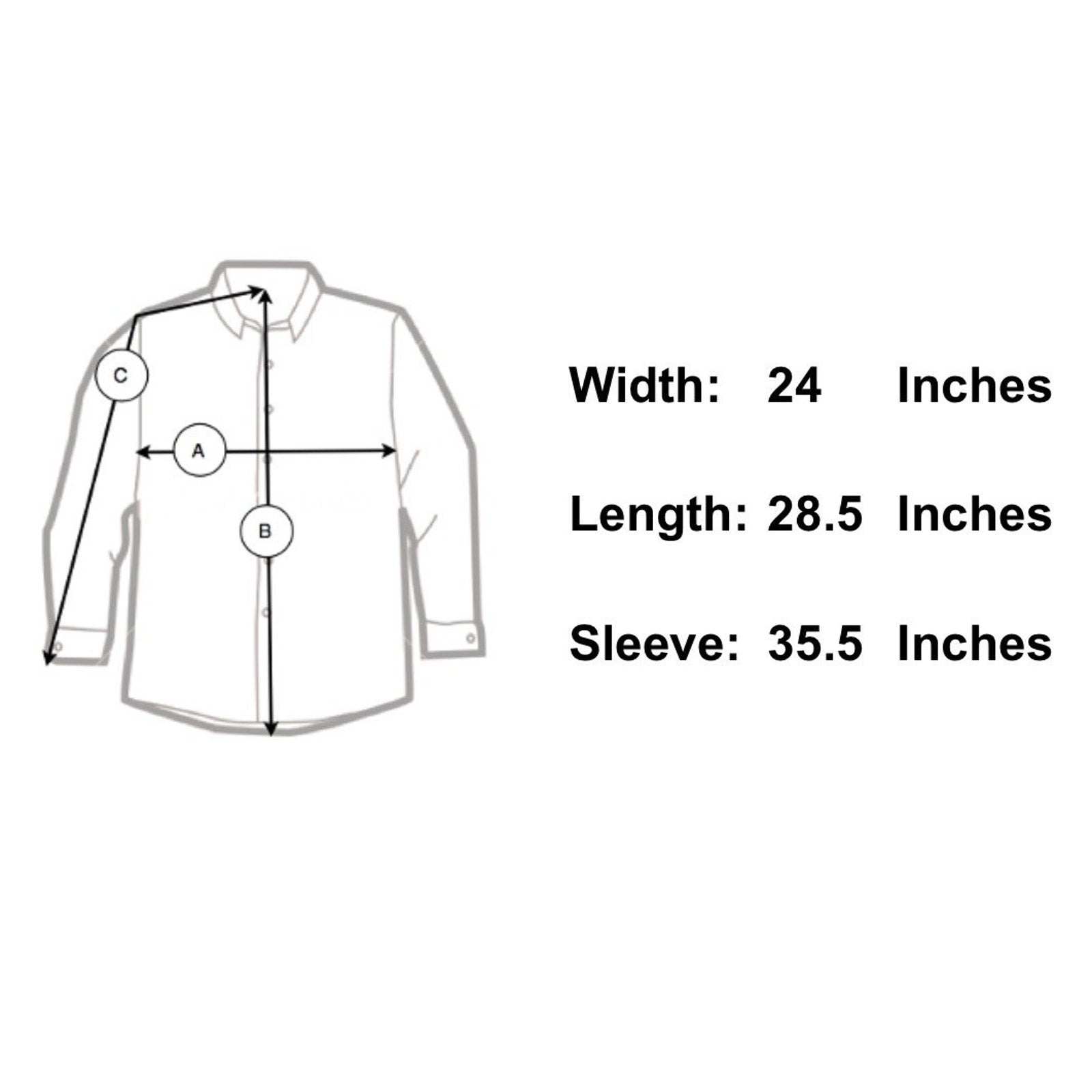 Sleeve Length 35.5" - From the center of the back of the neck to the shoulder to the bottom of the sleeve