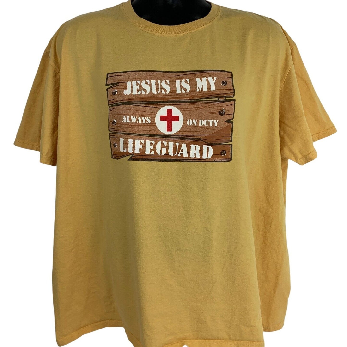 耶稣是我的救生员 T 恤 男式 2XL 黄色 基督教 宗教 游泳者