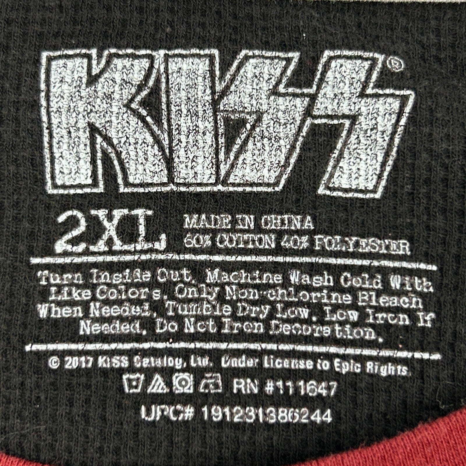 Kiss Thermal T Shirt Rock Band 2017 Black Long Sleeve Mens 2XL XXL Graphic Tee