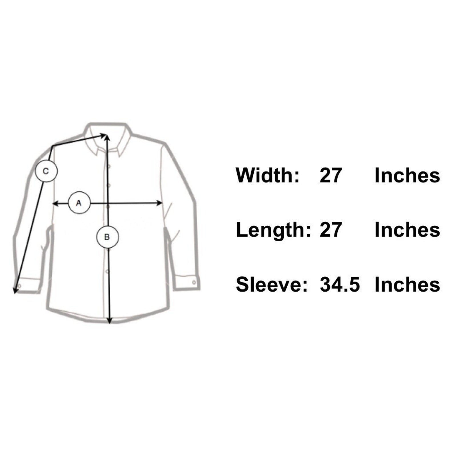 Sleeve Length 34.5" - From the center of the back of the neck to the shoulder to the bottom of the sleeve