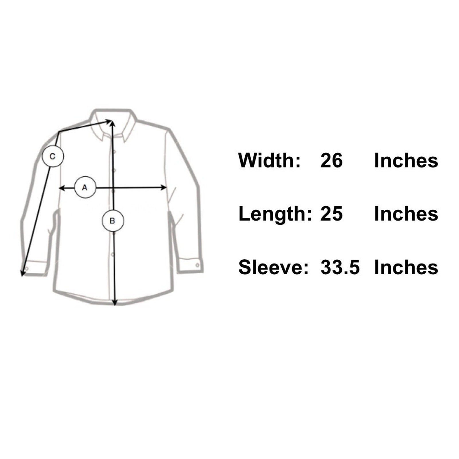 Sleeve Length 33.5" - From the center of the back of the neck to the shoulder to the bottom of the sleeve