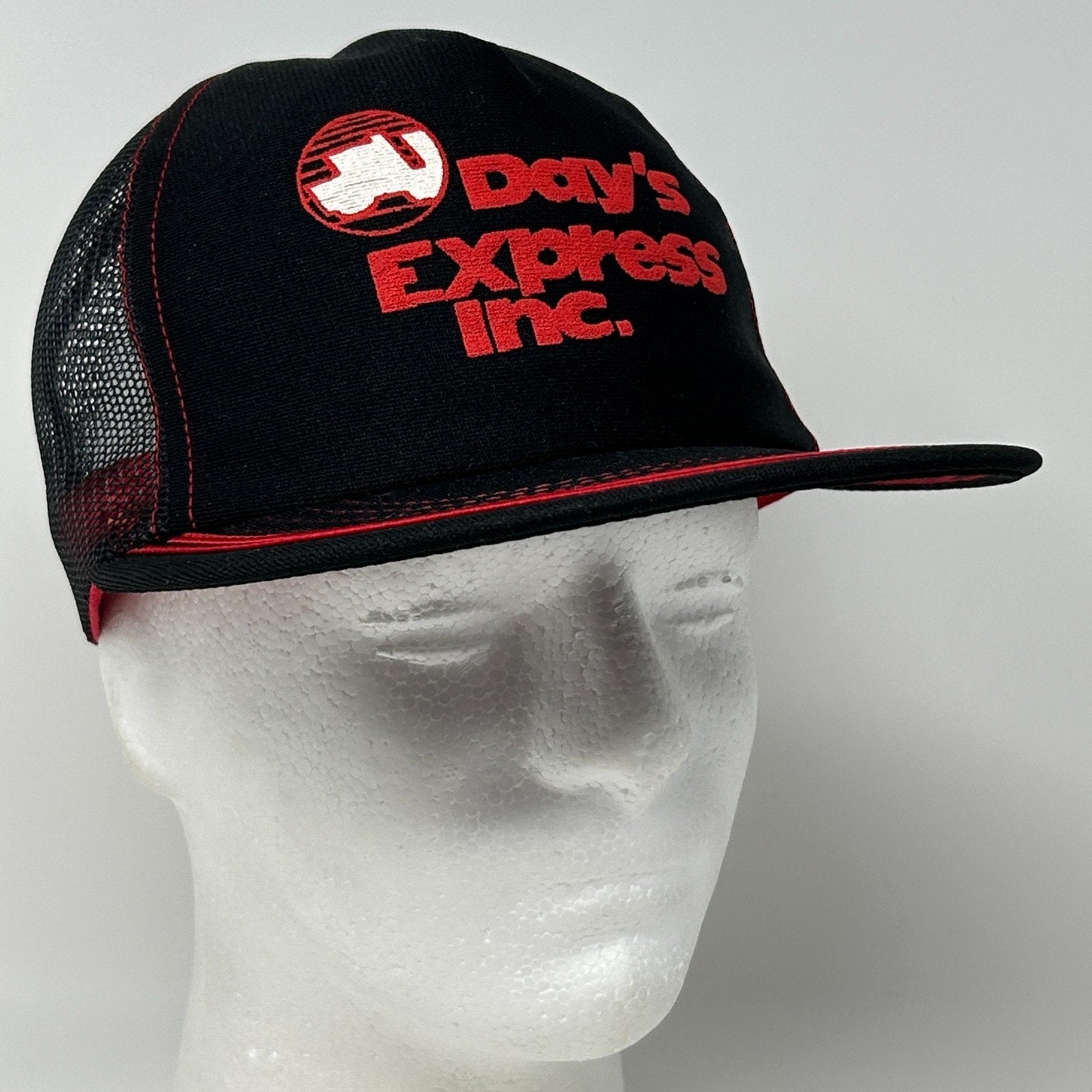 Vintage 80s Day's Express Inc Trucker Hat Baseball Cap Trucking Shipping Forklift Overland Expressions Made In USA Mesh Snapback Black 5 Panel A-Frame