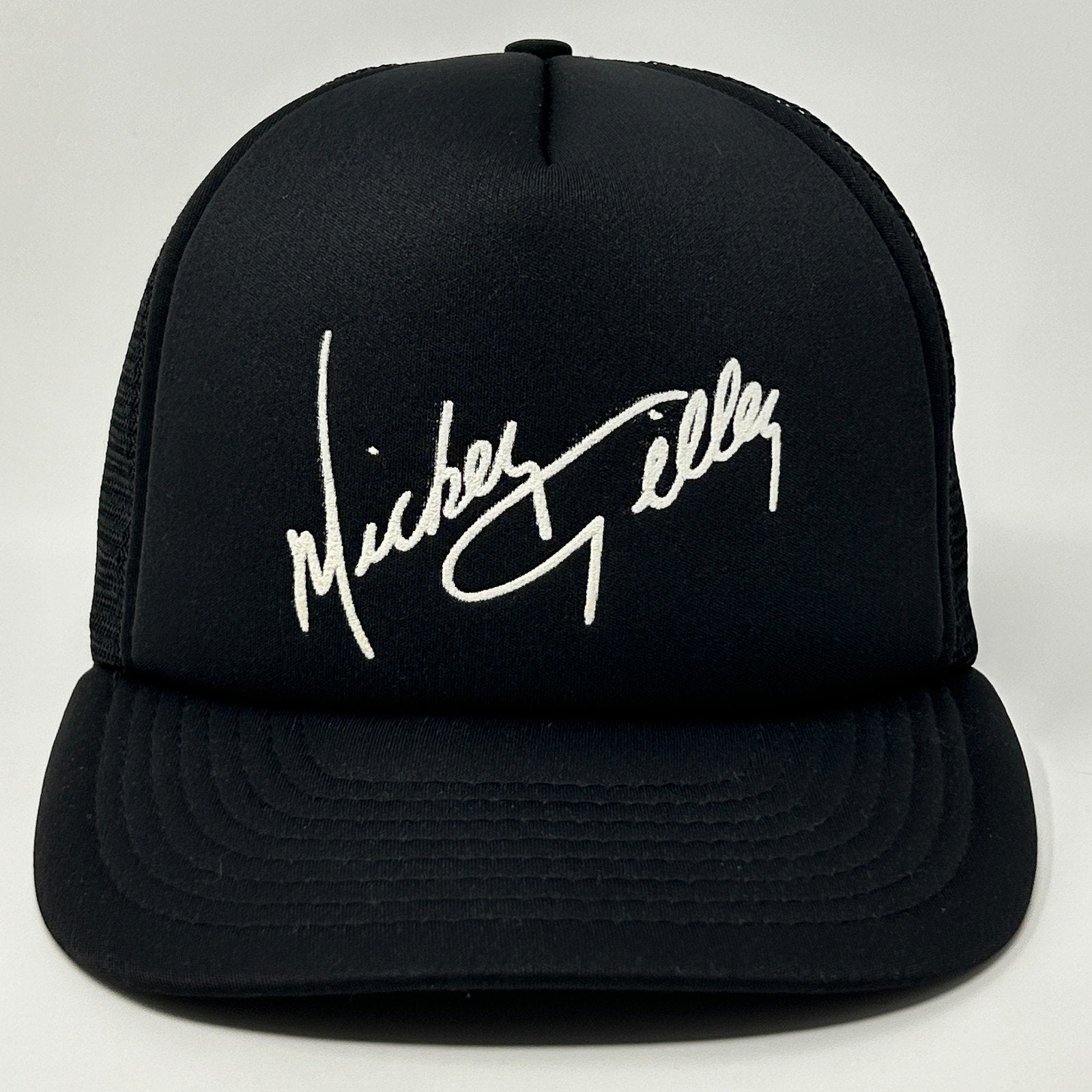 Vintage 80s Mickey Gilley Trucker Hat Baseball Cap Country Western Music Mesh Snapback Black 5 Panel A-Frame