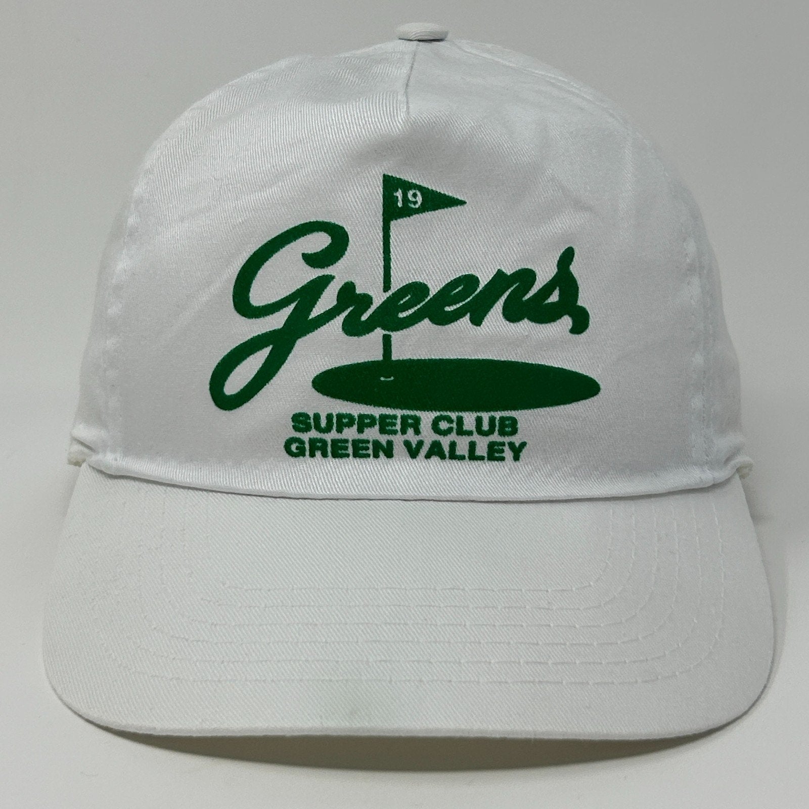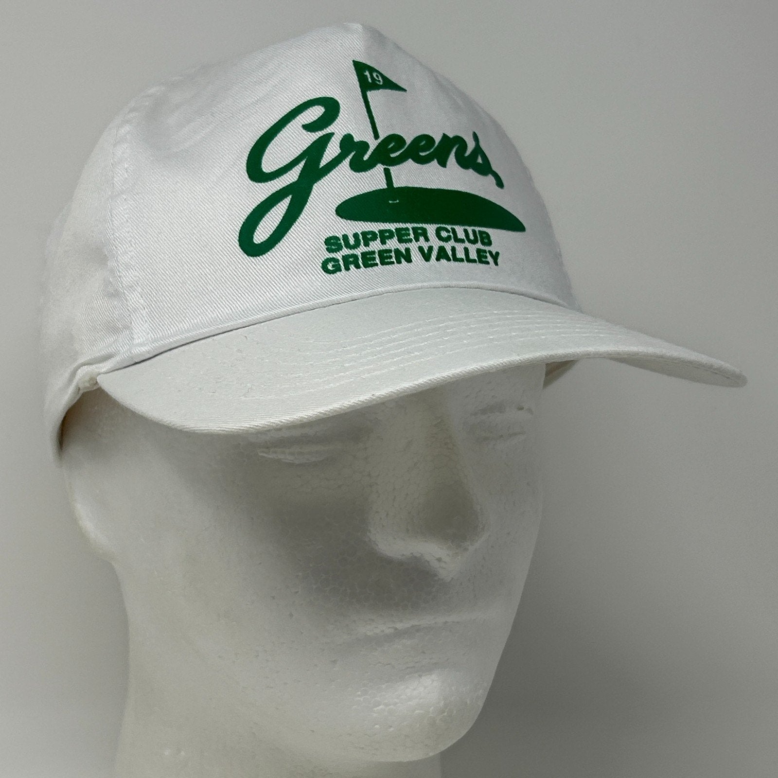 Vintage 90s Greens Supper Club Green Valley Hat Baseball Cap Golf Snapback White