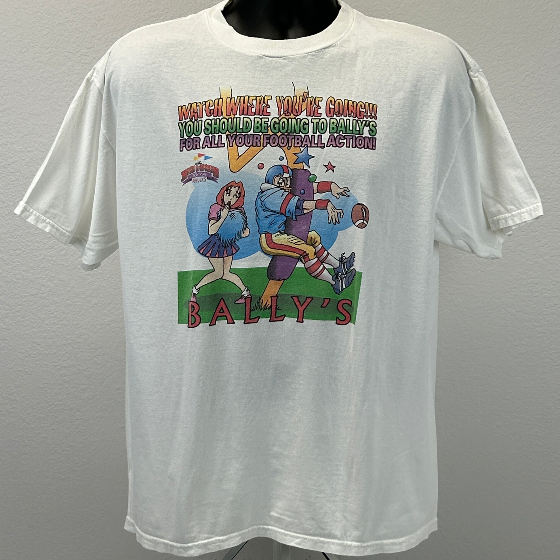 复古 1990 年代 Ballys 足球赛事和体育博彩体育博彩 T 恤拉斯维加斯赌场赌博 NFL NCAA 大学体育博彩啦啦队体育博彩 Tultex 白色图案 T 恤