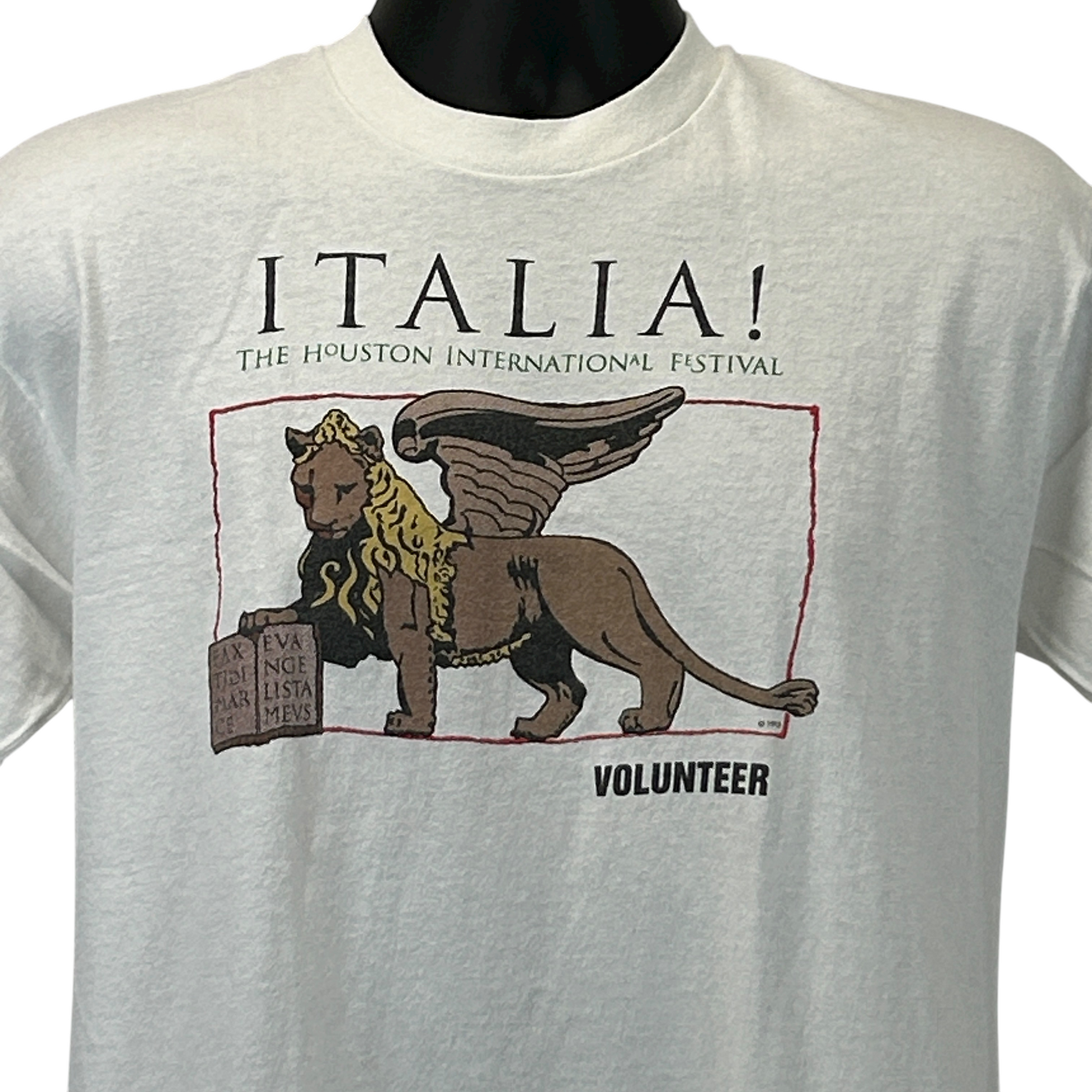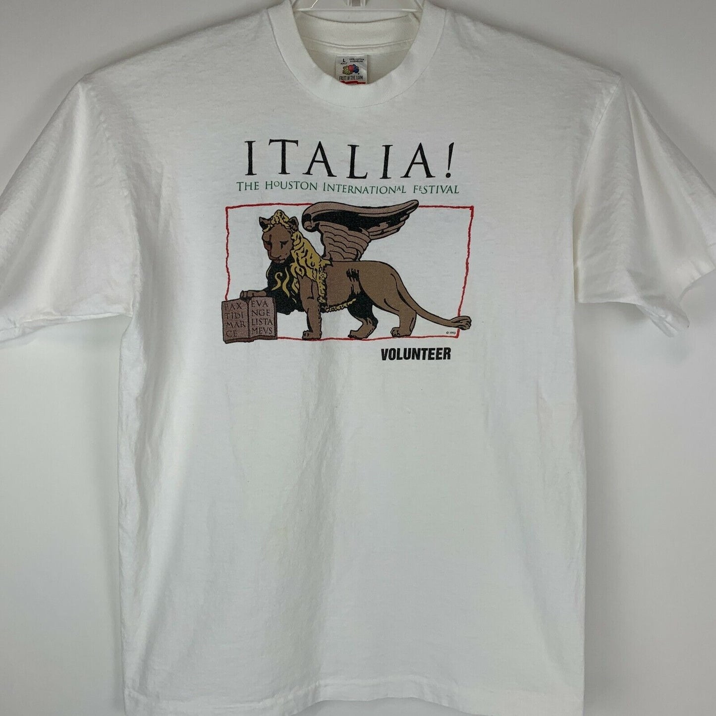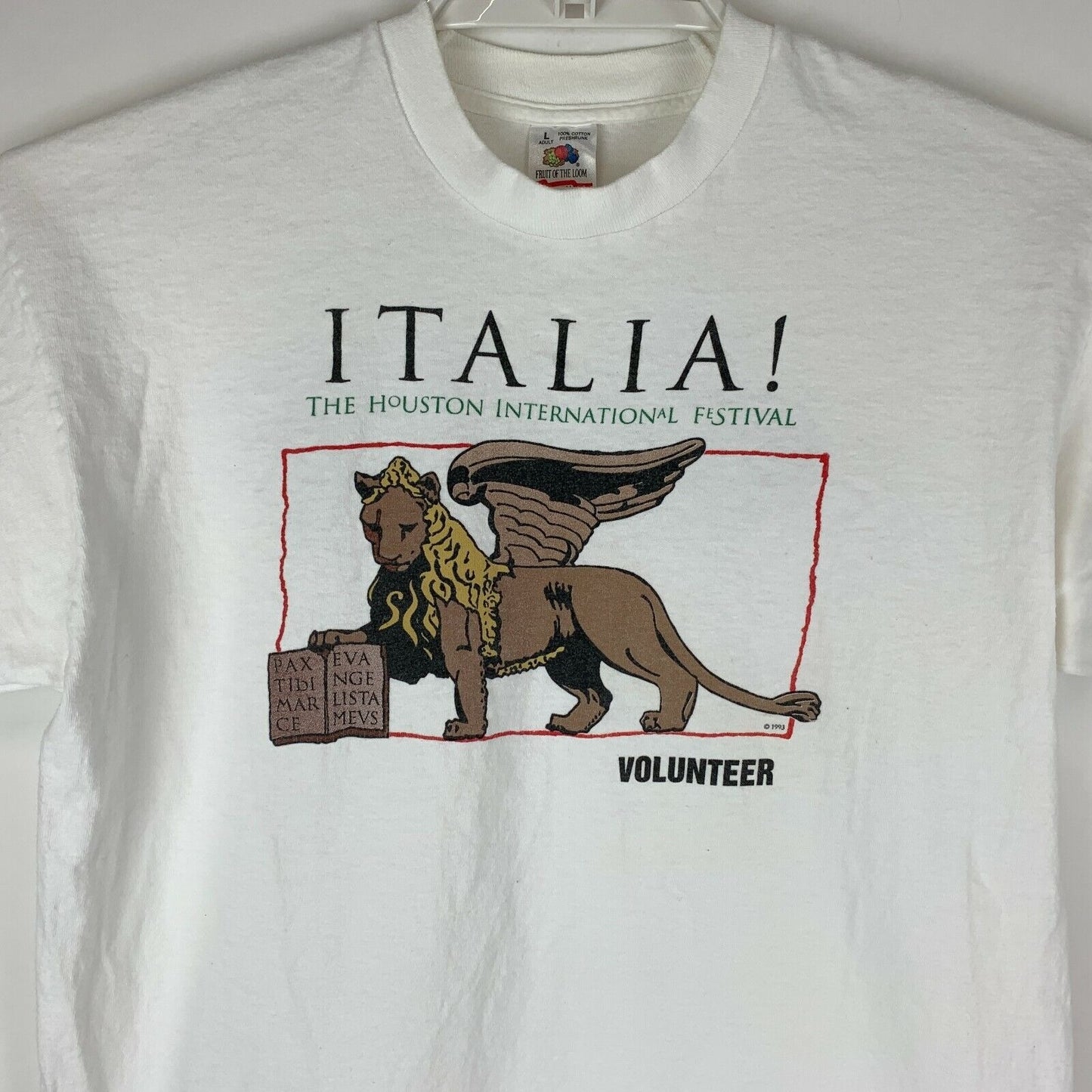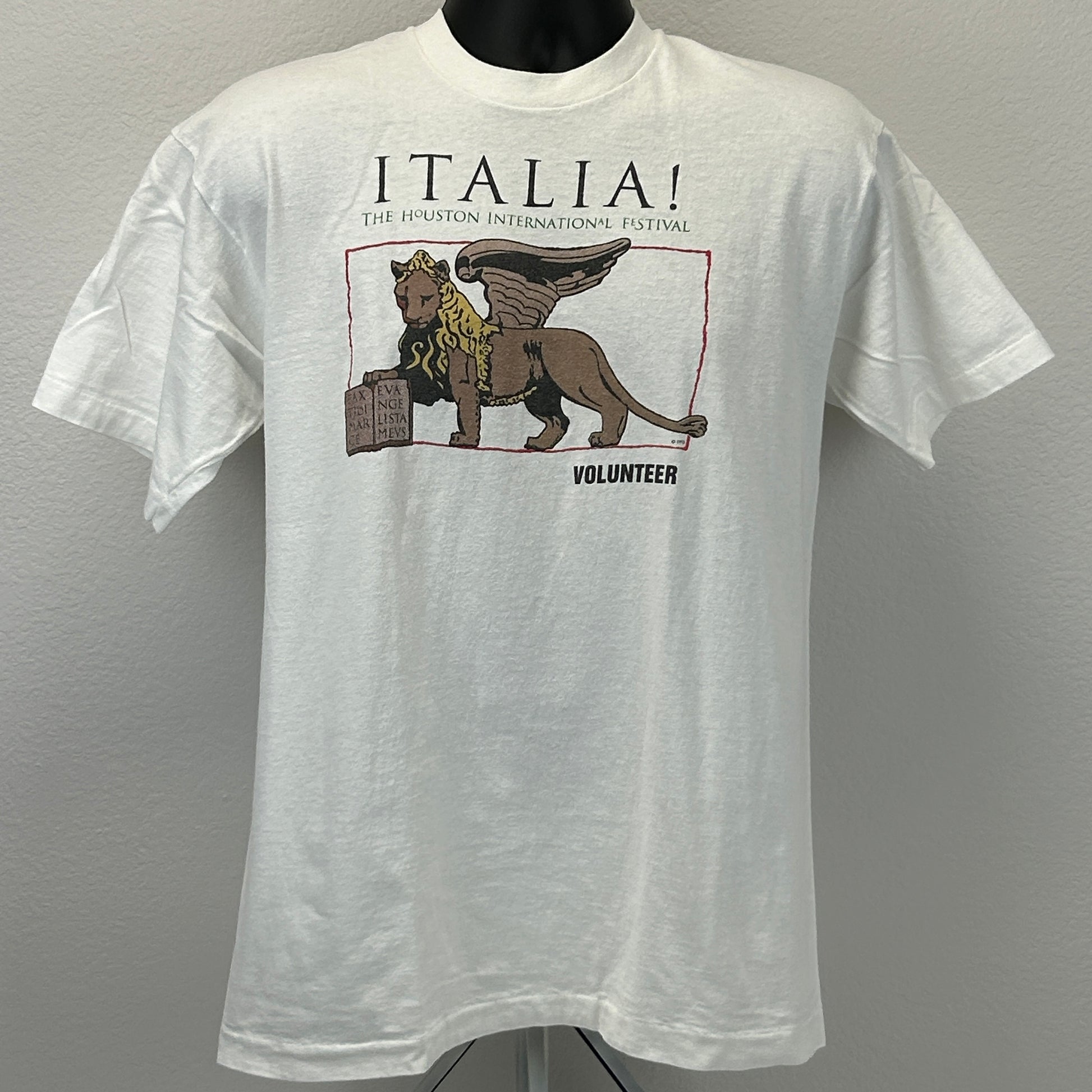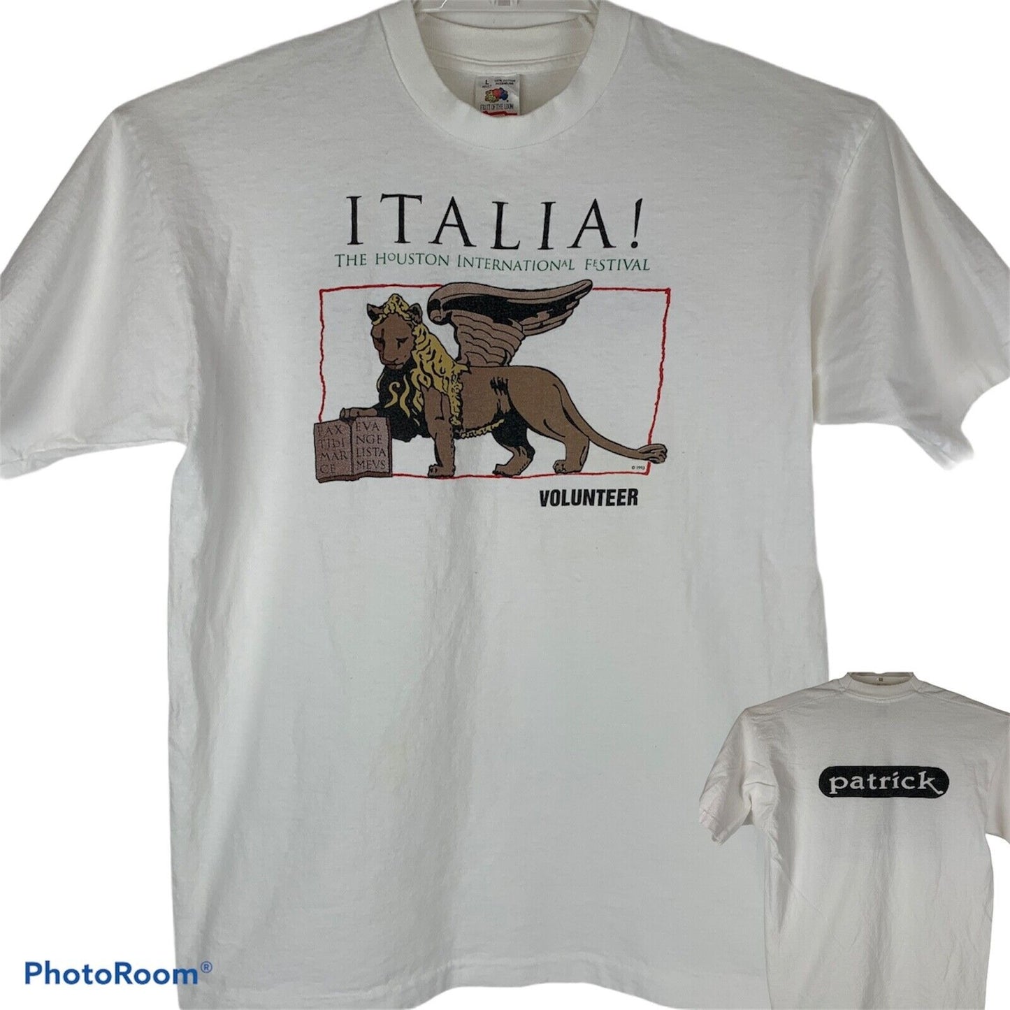 复古 1990 年代 Italia 休斯顿国际意大利节 T 恤 Patrick Texas 意大利白色 Fruit Of The Loom 美国制造单针图案 T 恤