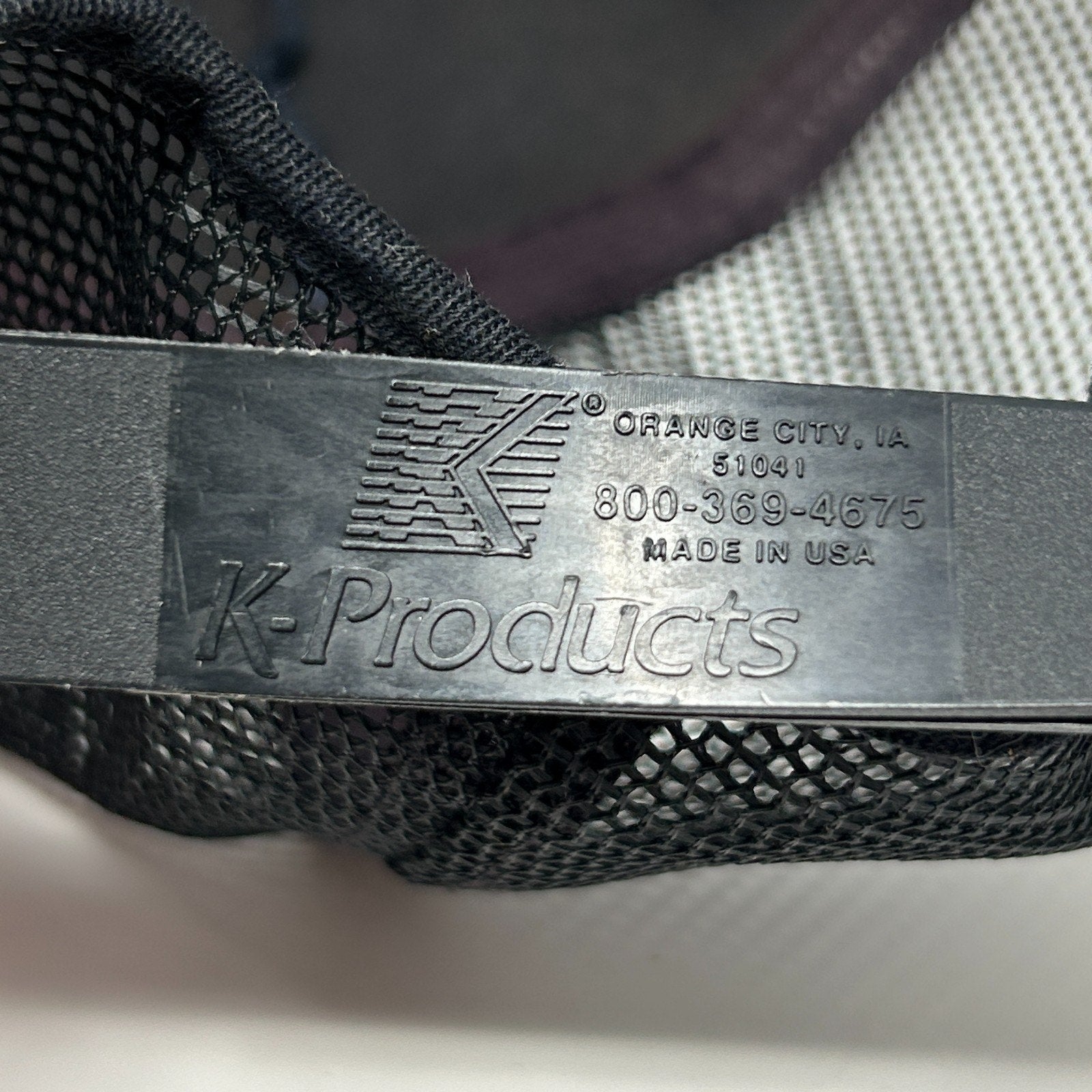 Vintage 80s NRA Patch Trucker Hat Baseball Cap National Rifle Association Guns Weapons Firearms Gold Leaves Leaf Scrambled Eggs Embroidered Embellishments Snapback Black 5 Panel A-Frame K-Brand K-Products Made In USA