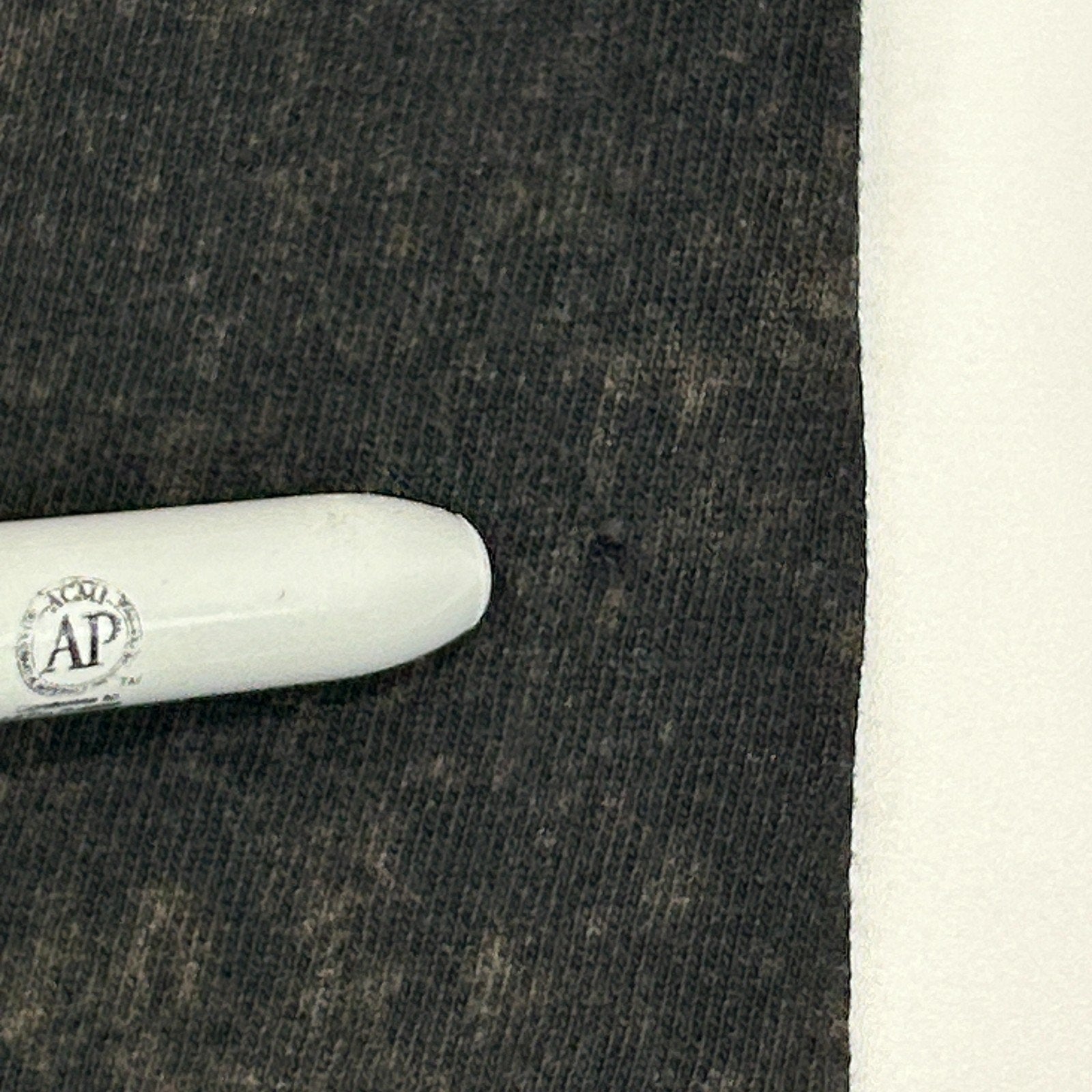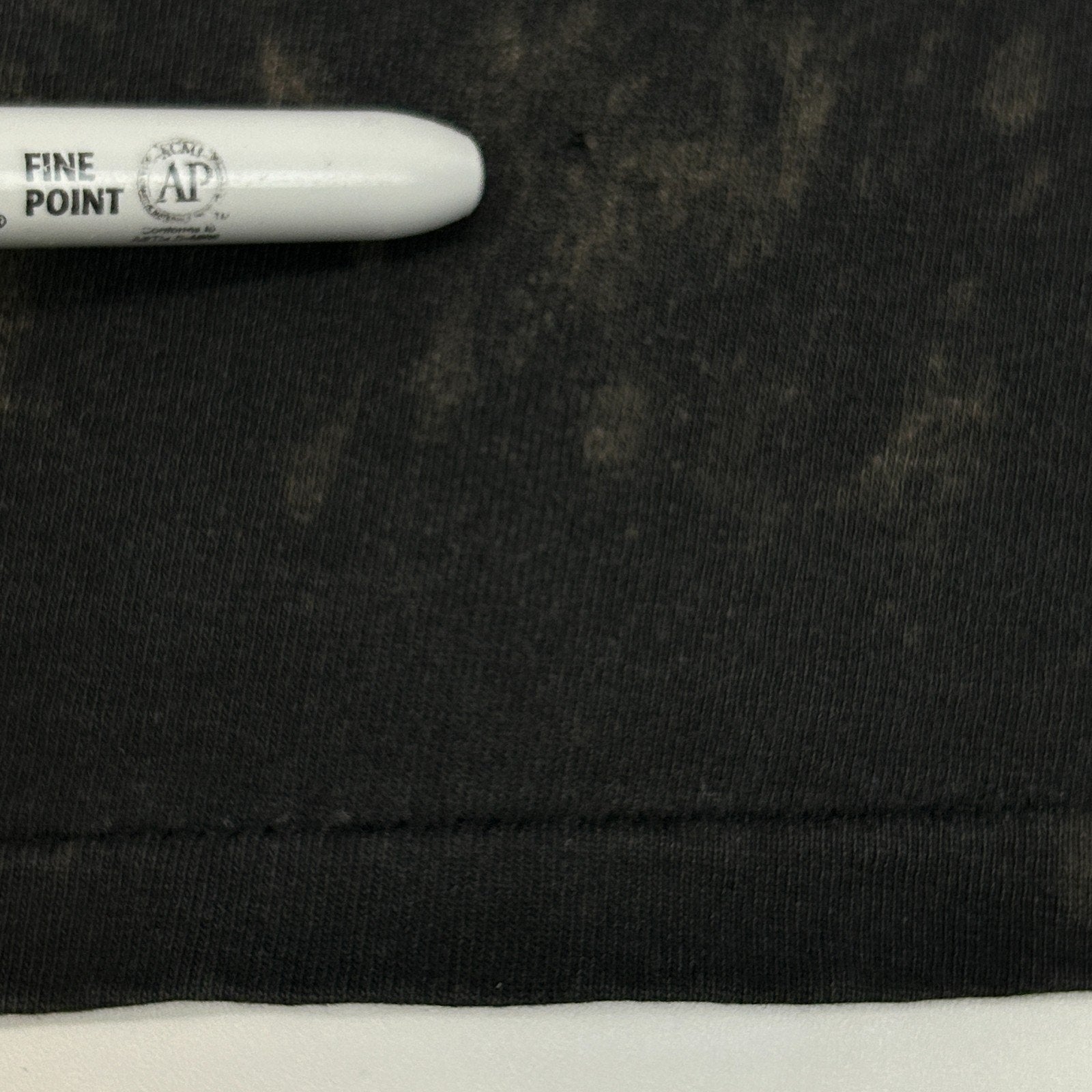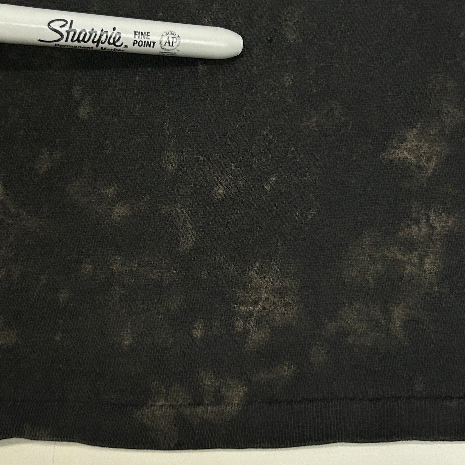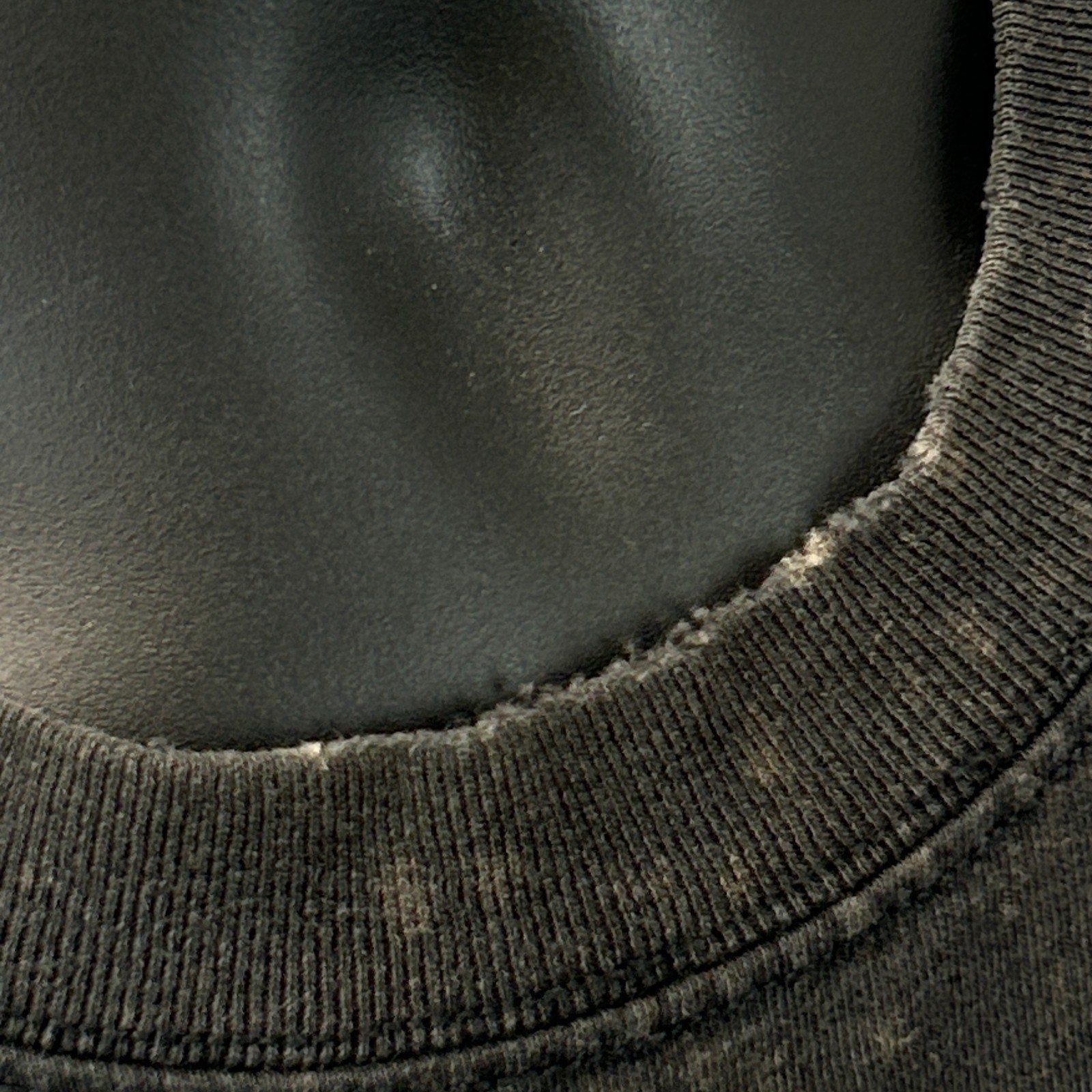 Has holes on the bottom back, fraying on the collar, and image cracking. No other flaws noticed. See photos.