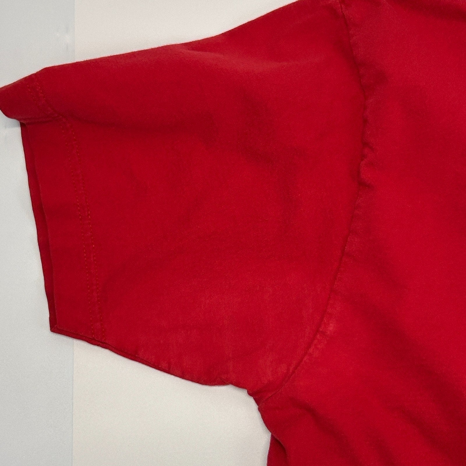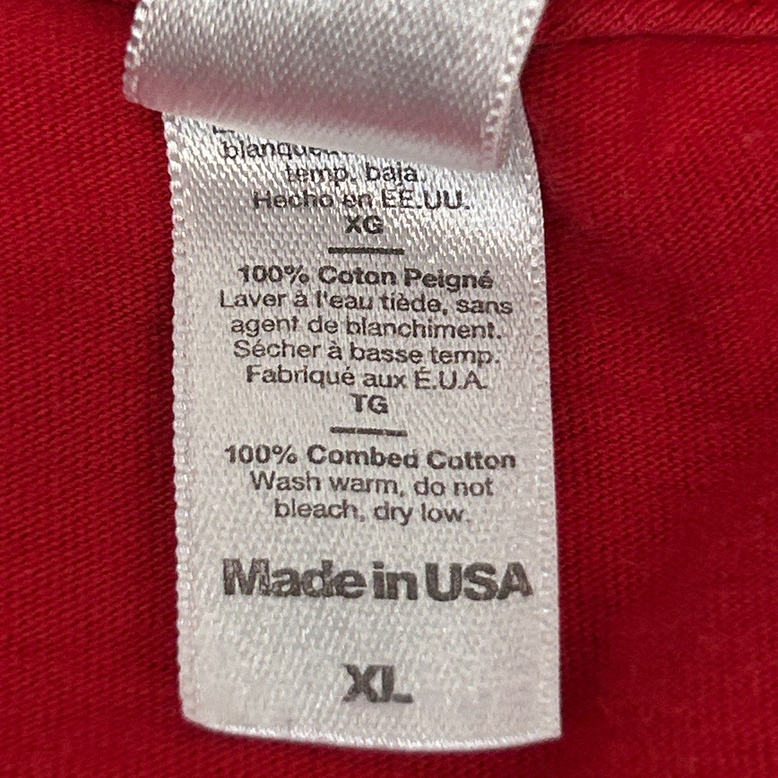 Has some image cracking on the sleeve graphic and light fading on the sleeves. No other flaws noticed. Tag is a X-Large but I feel it measures more similar to a modern Large. Check measurements to ensure fit. See photos.