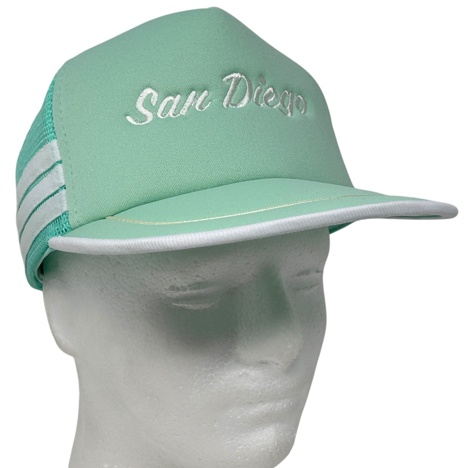 Vintage San Diego 3 Stripe Trucker Hat Cap Green 80s California Travel Tourist Tourism 3 Lines Mesh Snapback 5 Panel A-Frame