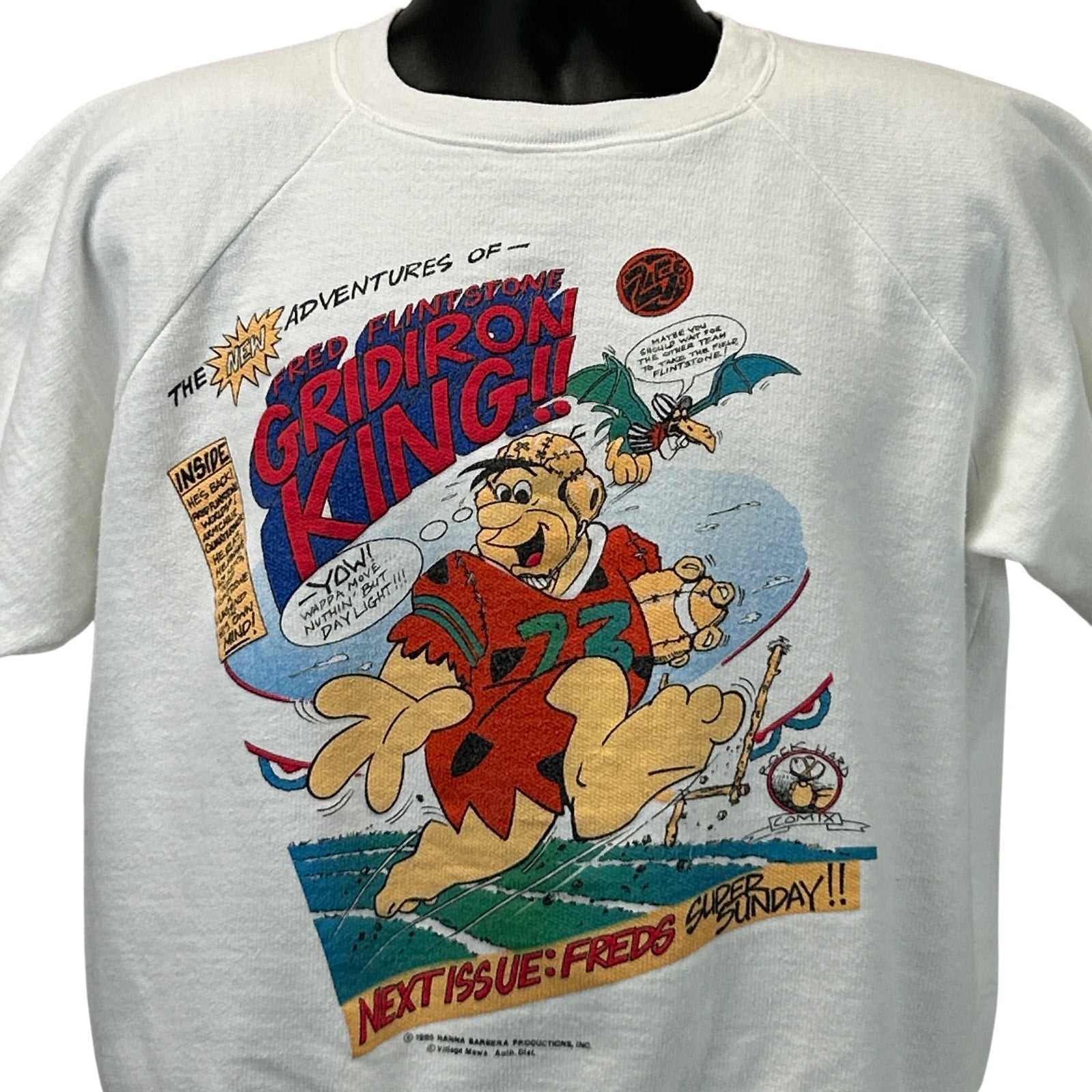 Vintage The Flintstones Football Sweatshirt Mens M Medium White 80s NFL Fred Flintstone Gridiron King Comic Book Crew Neck Sweater
