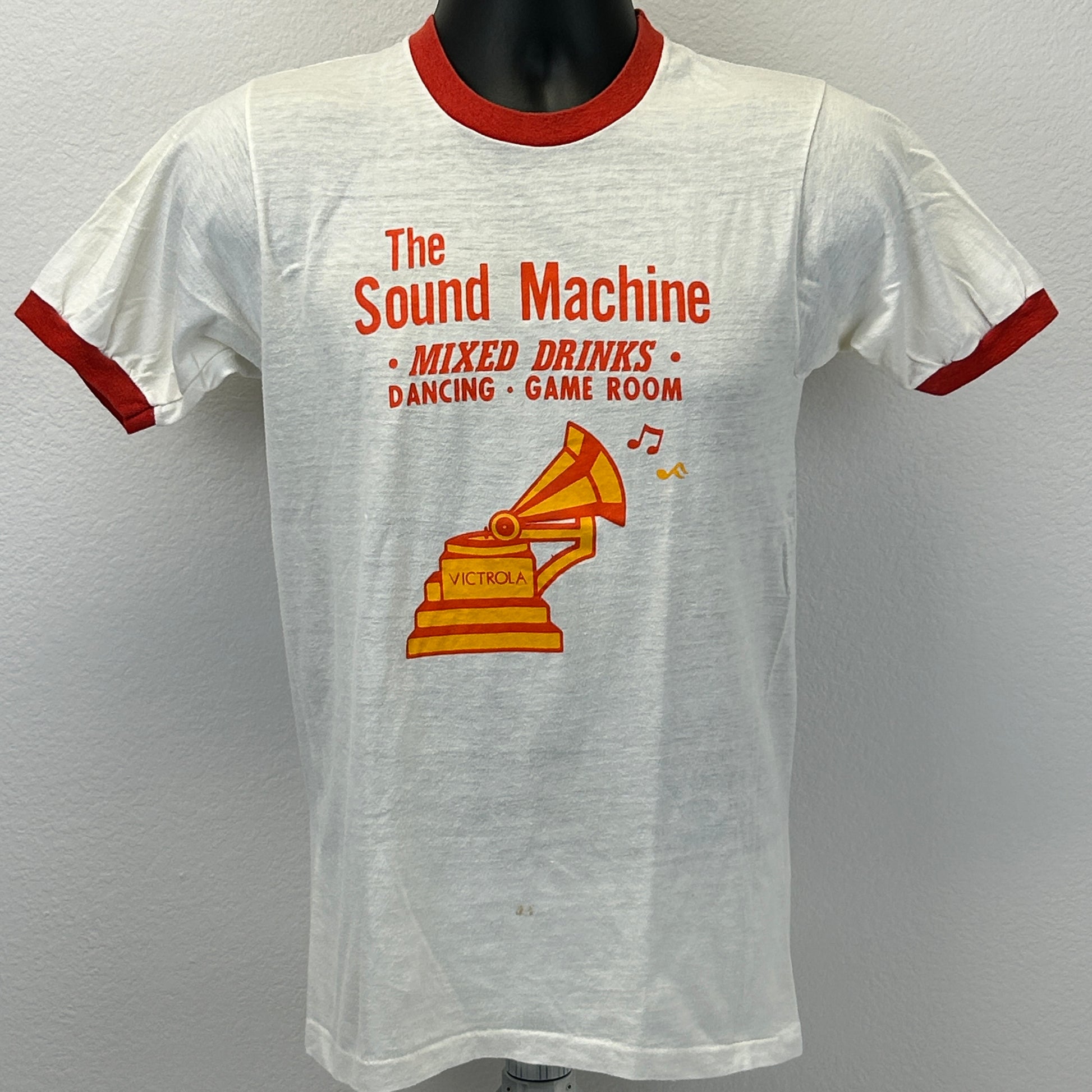 复古 20 世纪 70 年代 80 年代 The Sound Machine Dance Bar Ringer T 恤亨茨维尔德克萨斯迪斯科俱乐部混合饮料舞蹈游戏室 Victrola 留声机单针图案 T 恤