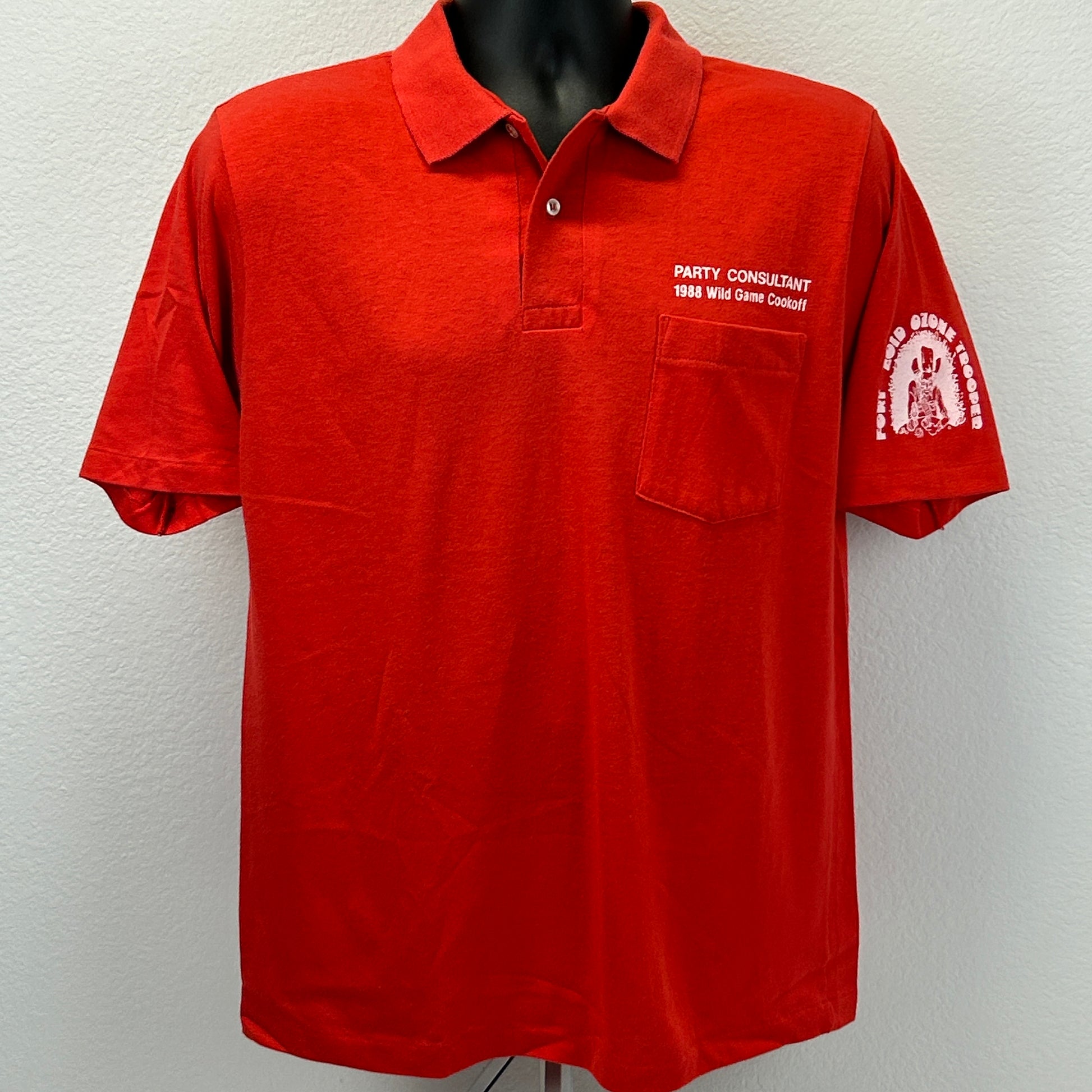 复古 80 年代野味烹饪派对顾问 Polo T 恤 Fort Zoid Ozone Trooper 休斯顿德克萨斯州 Hacienda San Juan 狩猎钓鱼度假村 Soto La Marina 墨西哥 Hanes 红色单针缝制美国制造图案 T 恤