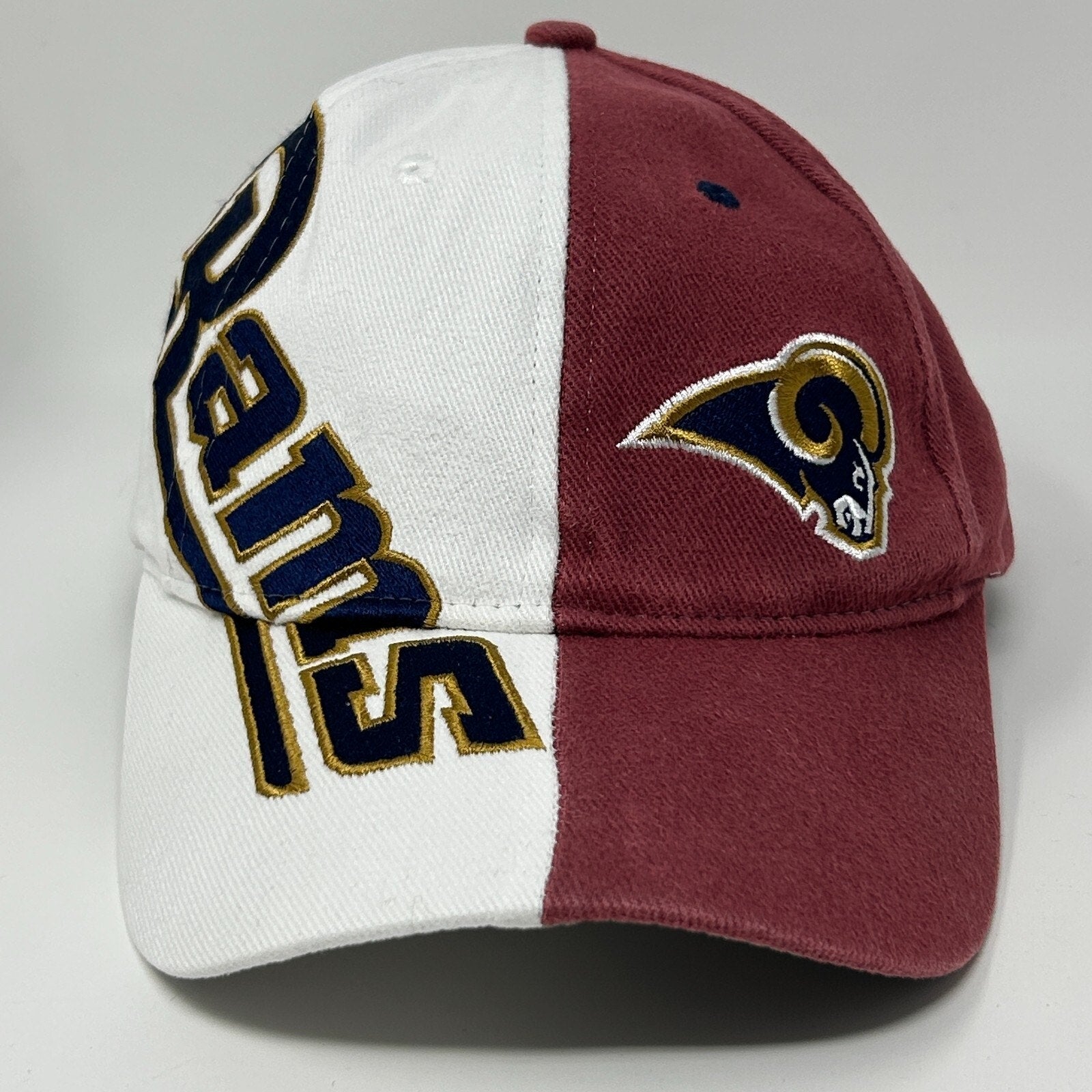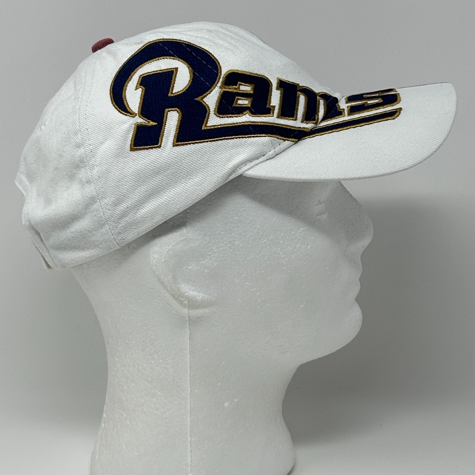 Vintage Y2Ks 2000s Los Angeles LA Rams Hat Baseball Cap NFL Game Day Football Strapback White 6 Panel