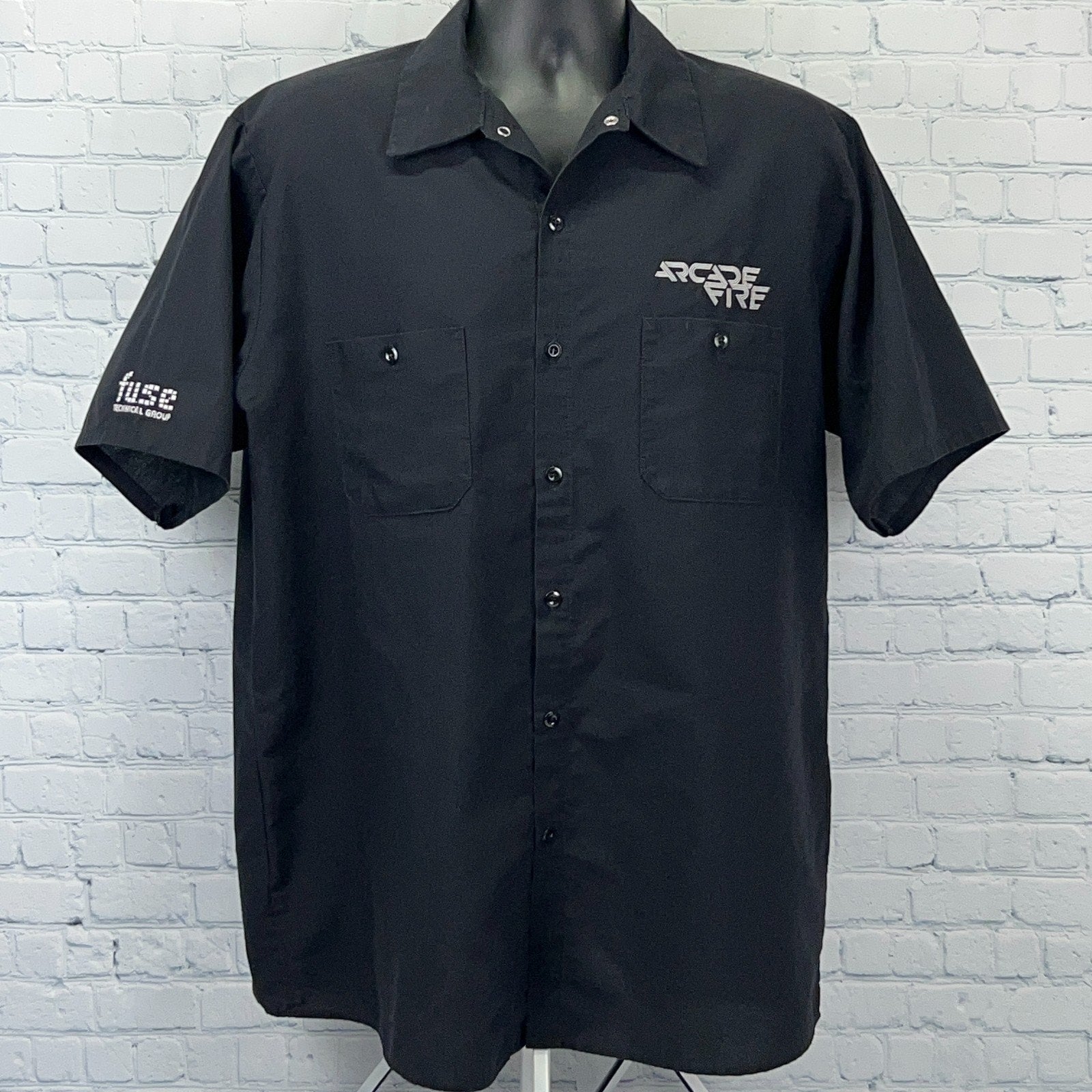 Arcade Fire Roadie Button Front Shirt Local Crew We Tour Fuse Technical Group Short Sleeve Pockets Red Kap Button Up Button Down Black Mens XL X-Large