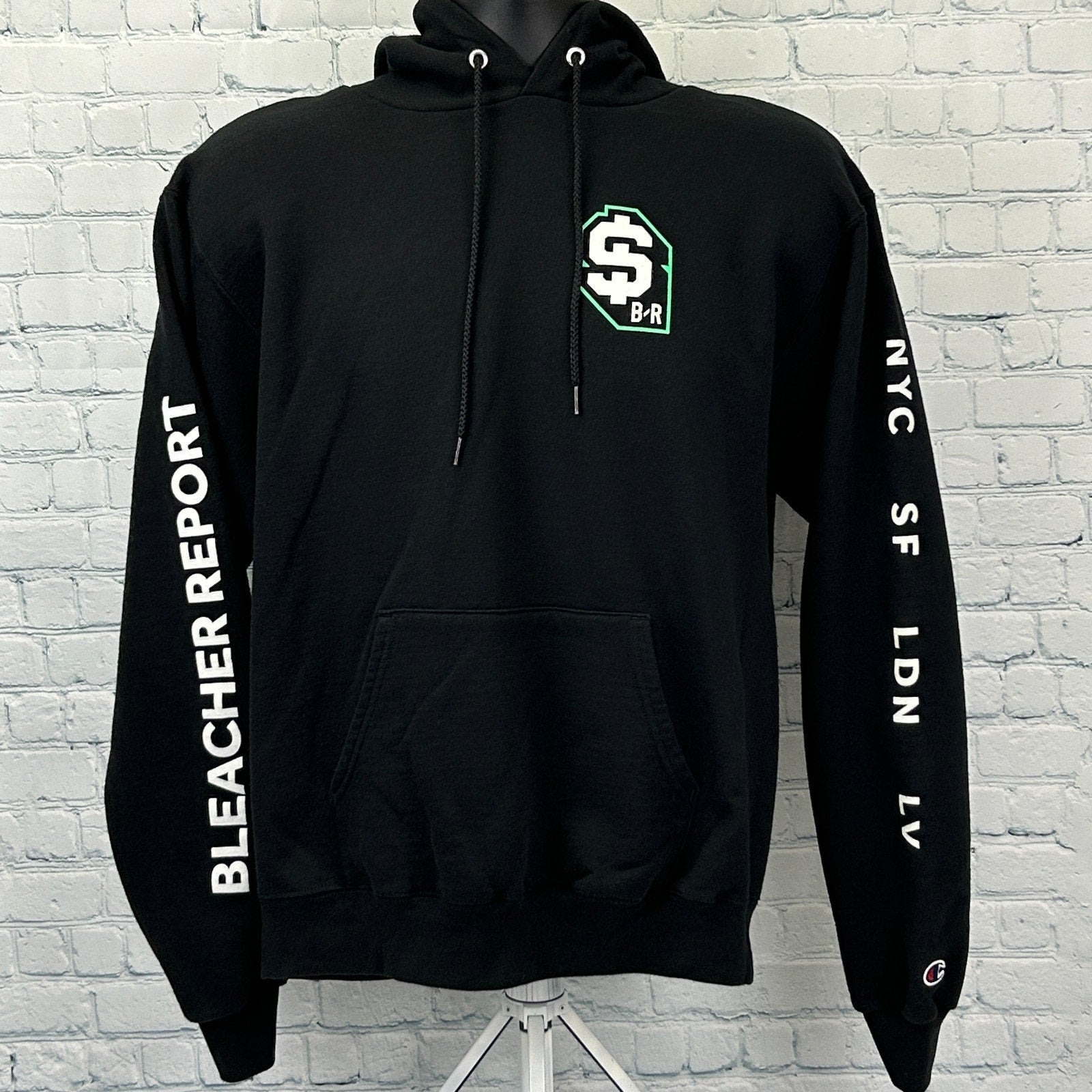 Bleacher Report Hoodie Hooded Sweatshirt Sports Long Sleeve Champion Black Mens M Medium