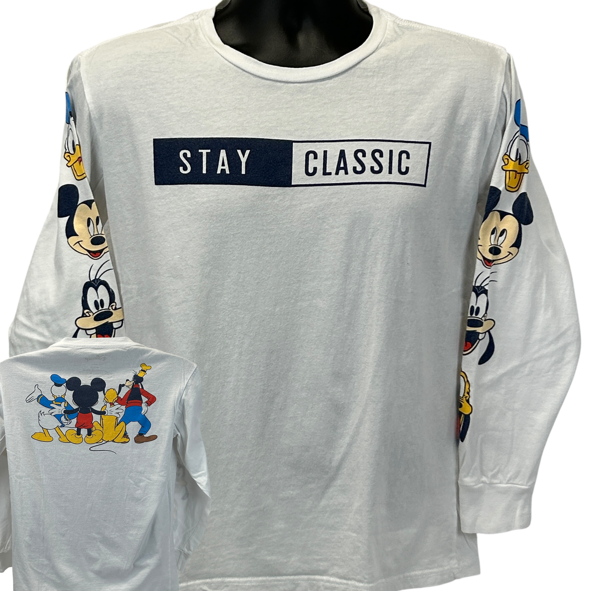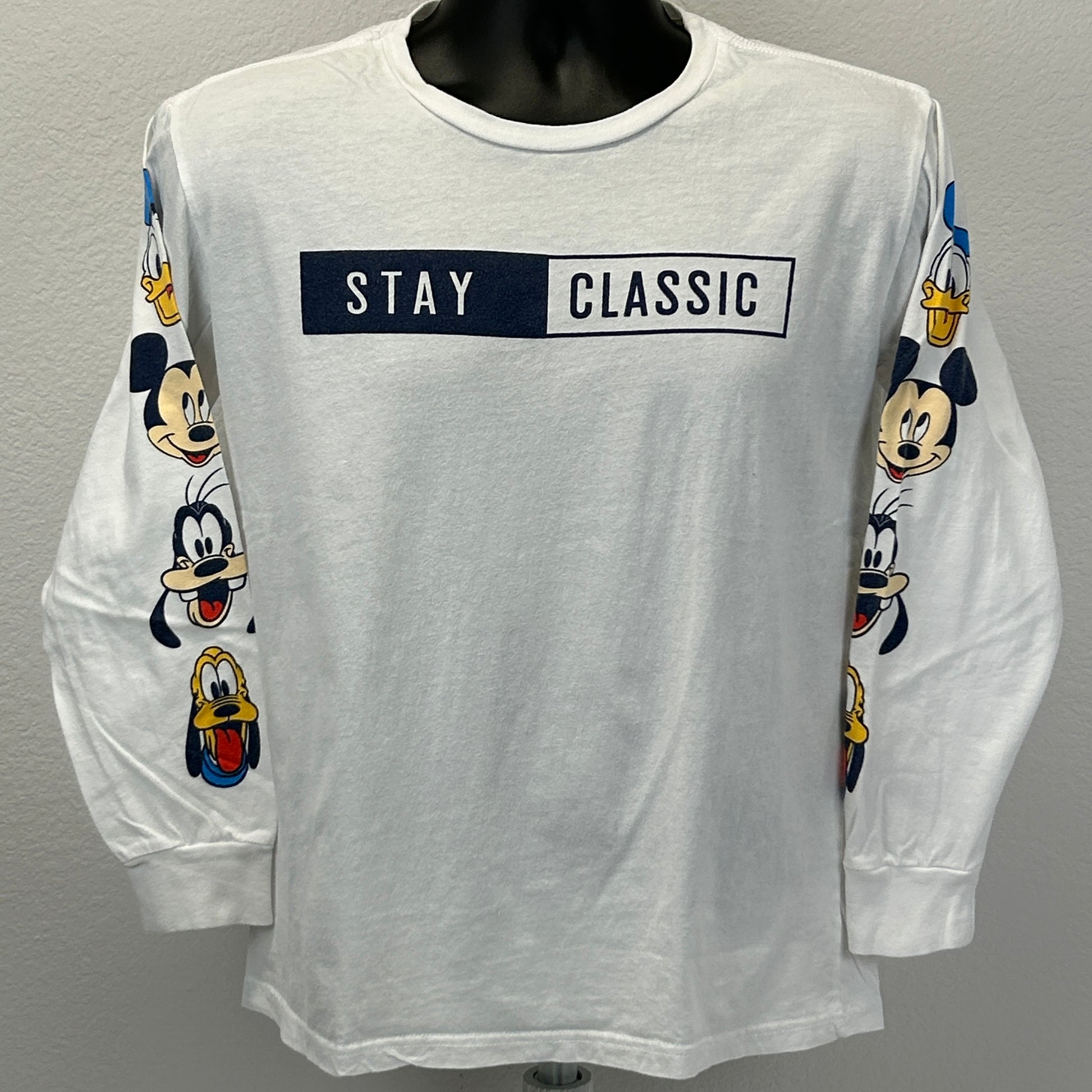 华特迪士尼经典米老鼠 T 恤迪士尼乐园冥王星高飞唐老鸭长袖白色疯狂火车头图案 T 恤