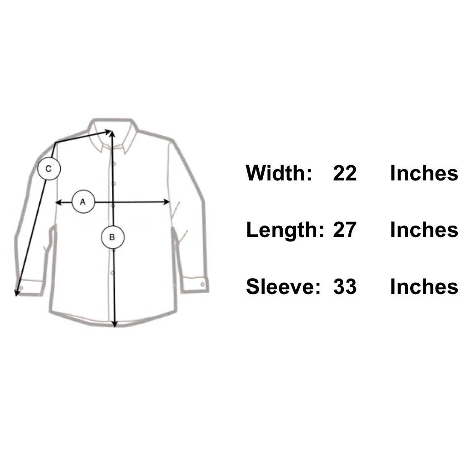 Sleeve Length 33" - From the center of the back of the neck to the shoulder to the bottom of the sleeve