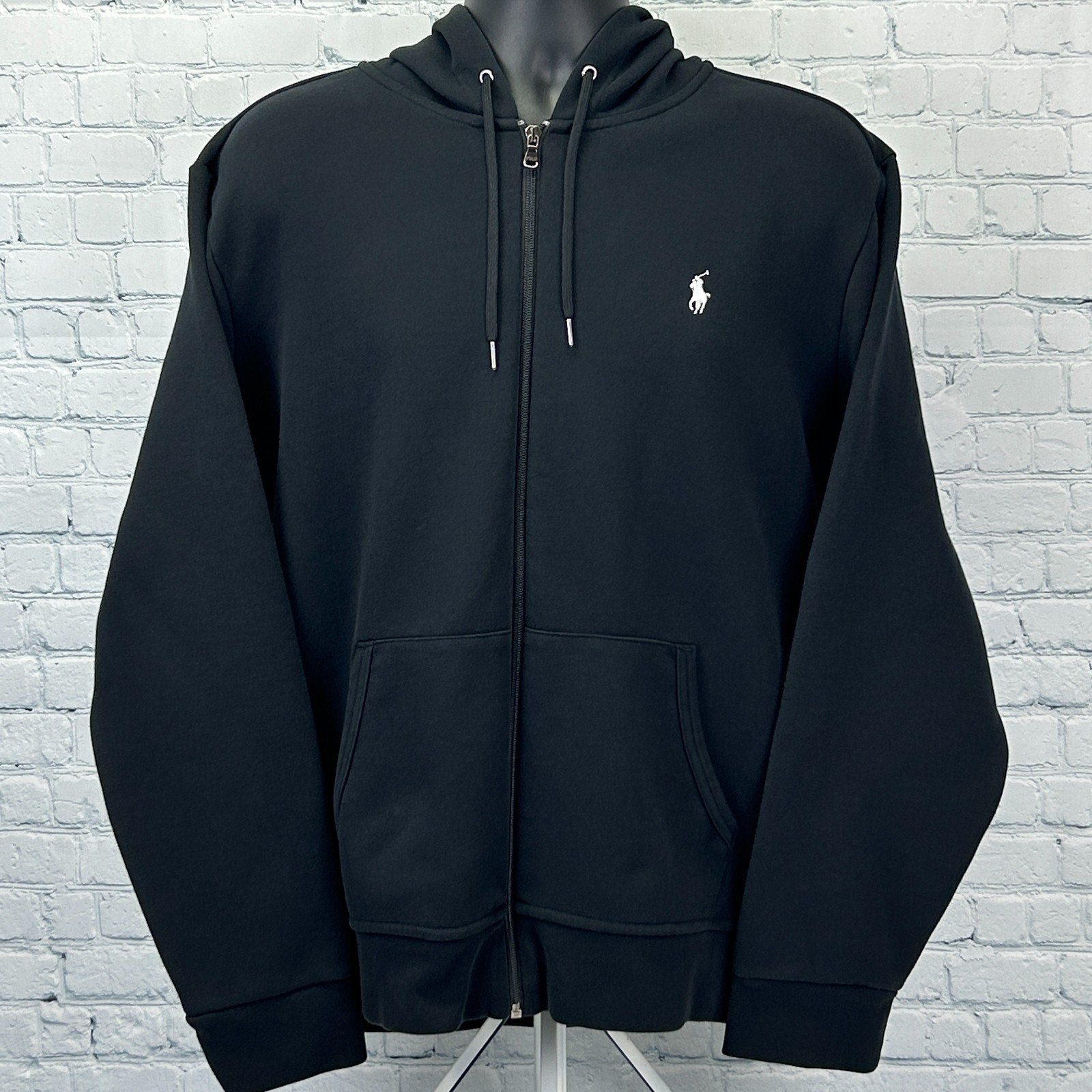 Polo Ralph Lauren Performance Hoodie Logo Black Small White Pony Logo Hooded Sweatshirt Full Zip Long Sleeve XL X-Large