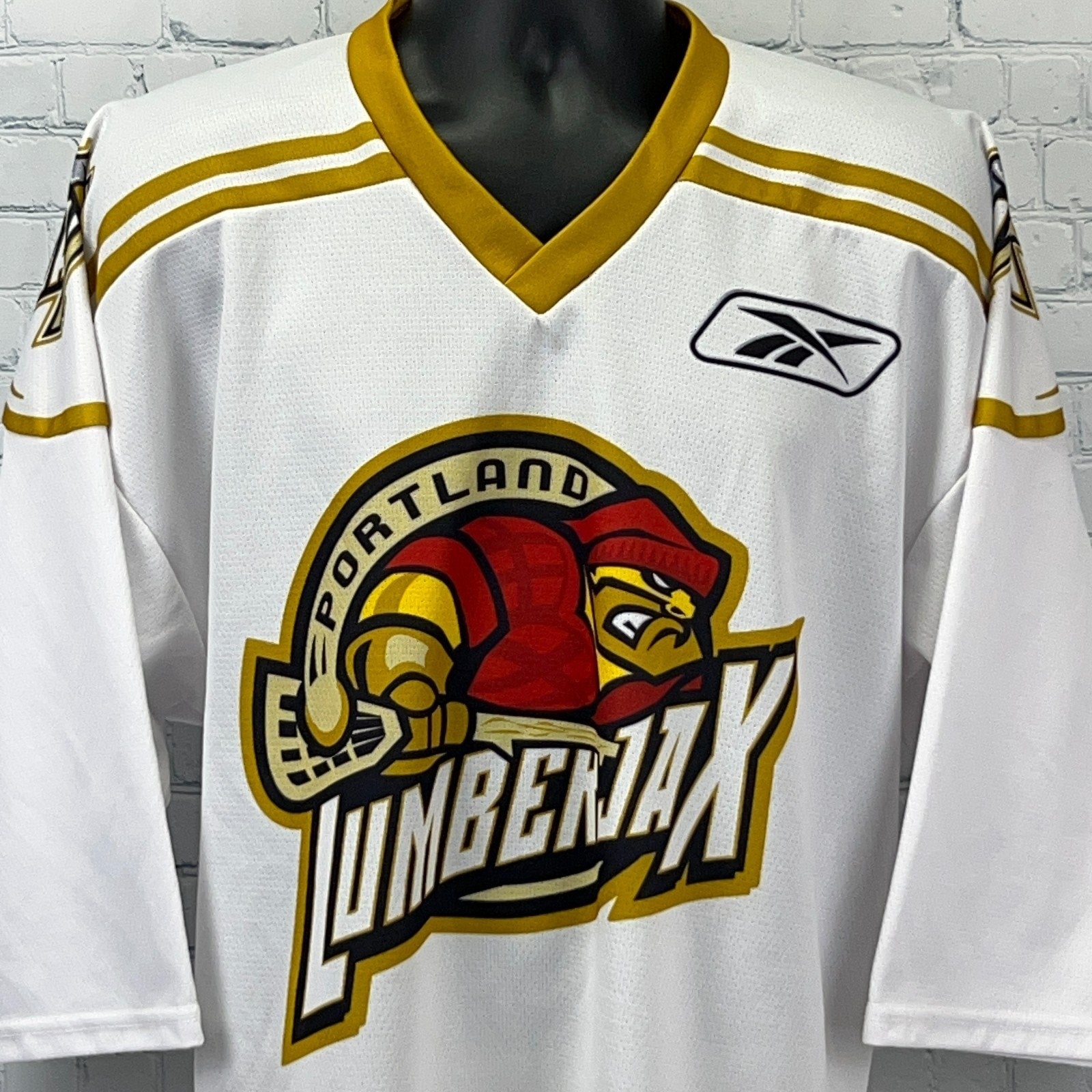Portland Lumberjax Jersey Shirt National Lacrosse League NLL Official White 3/4 Sleeve Reebok Made In Canada L Large