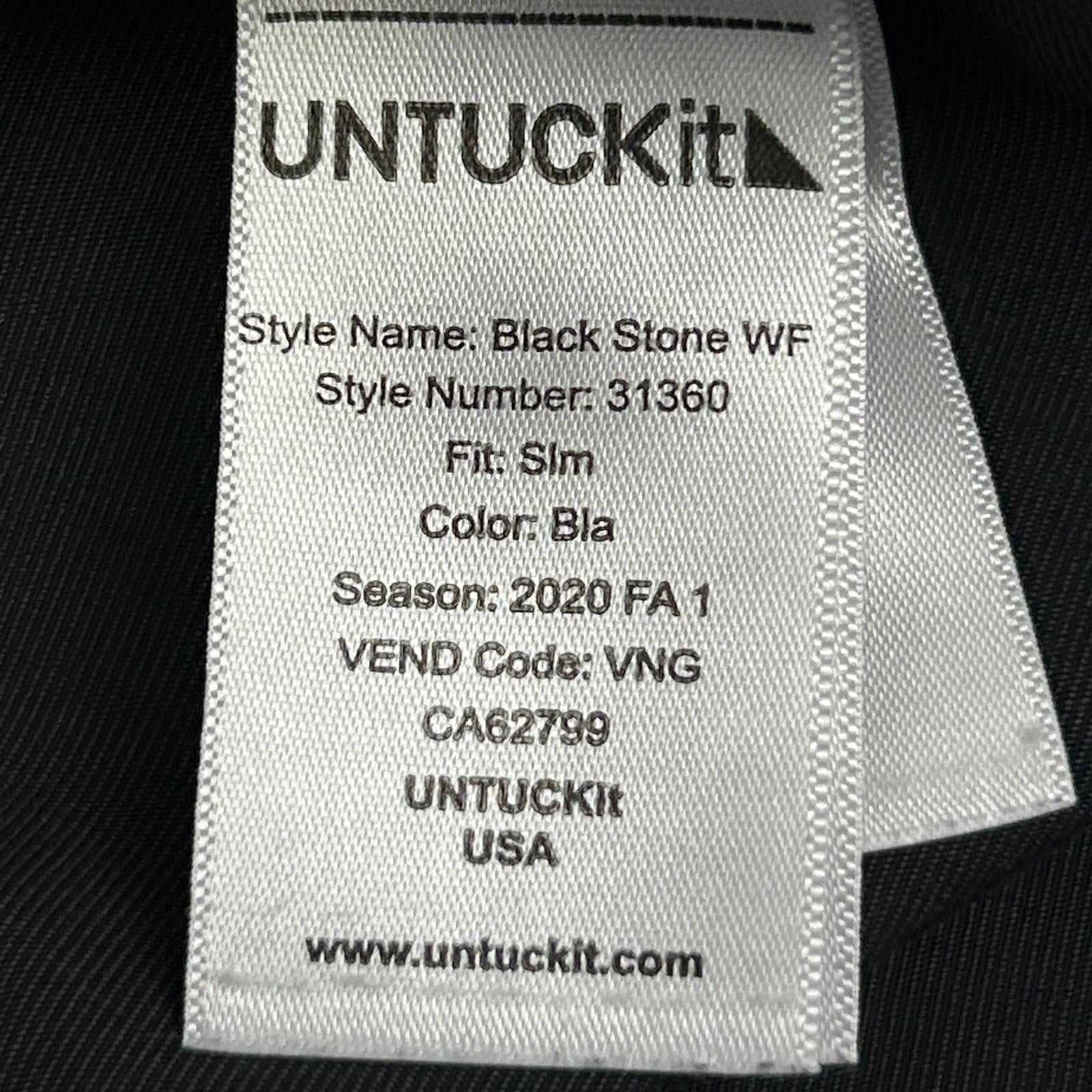 UNTUCKit Black Stone WF Slim Fit Button Front Shirt Solid Long Sleeve Button Up Button Down Wrinkle Free 31360 Mens L Large