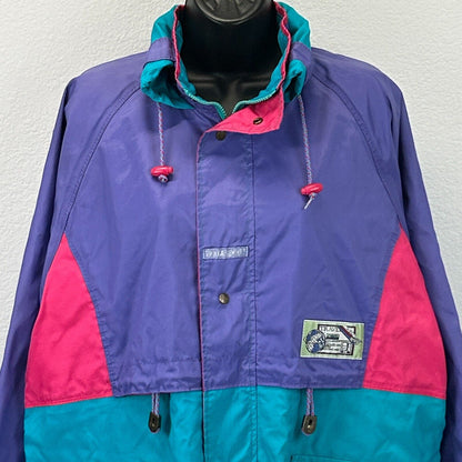 Vintage 90s Agu Sport Jacket Womens Large Travel Raincoat Hooded Pockets Purple