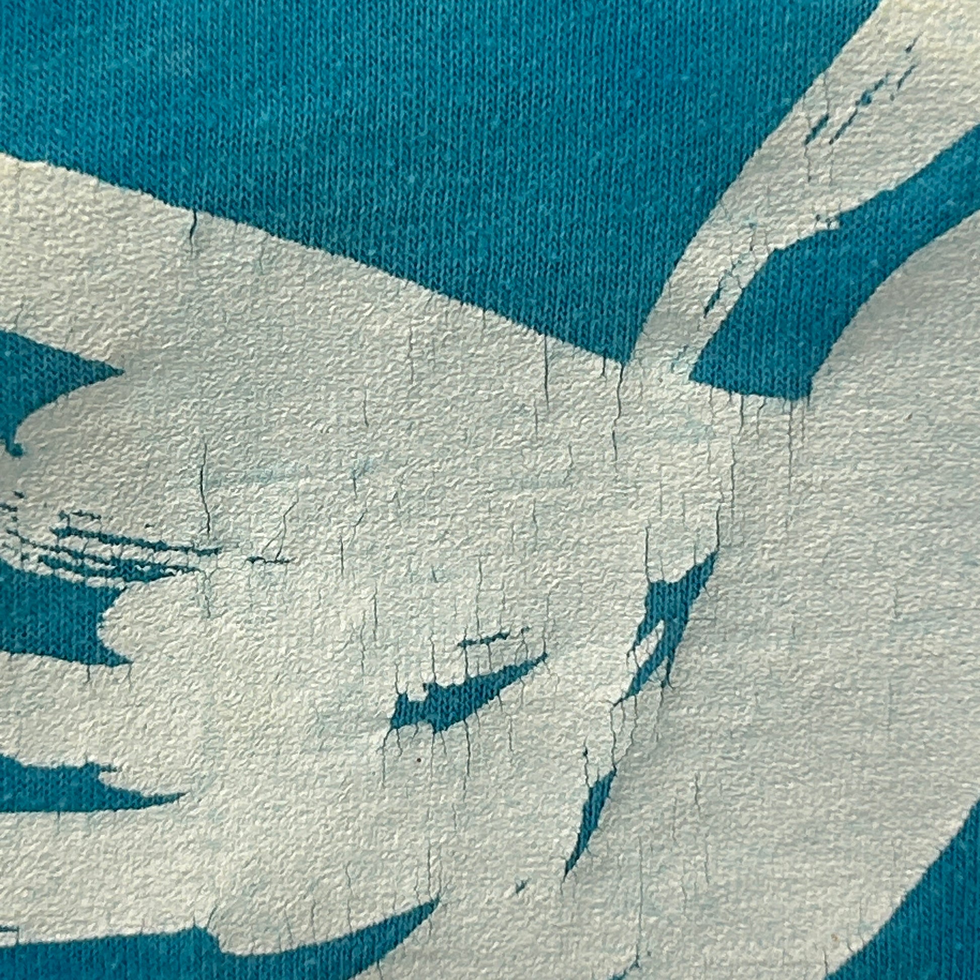有一些淡淡的斑点、轻微起球、轻微图像破裂,以及衣领第一层面料上有洞 - 没有发现其他瑕疵。标签是 X-Large,但我觉得它的尺寸更接近现代 Large。检查尺寸以确保合身。已洗过,可直接穿着。见照片。