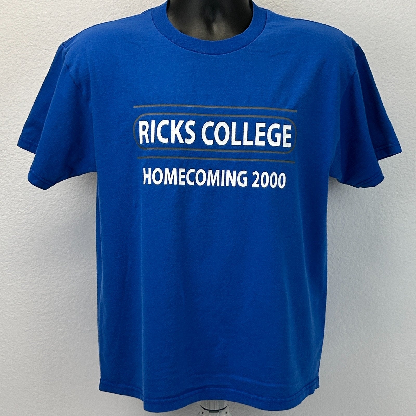 Vintage Y2Ks 2000 Ricks College Homecoming 5K T Shirt Brigham Young University BYU Idaho Rexburg Running Runner Blue L Large Fruit of the Loom Graphic Tee